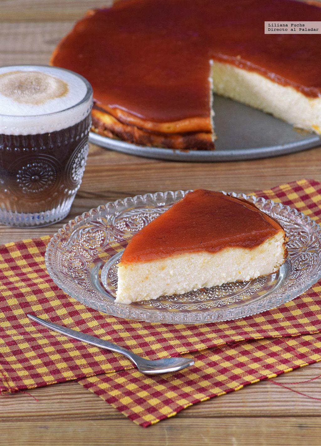 *Tarta de queso crema con cubierta de dulce de membrillo y gajos de pomelos.