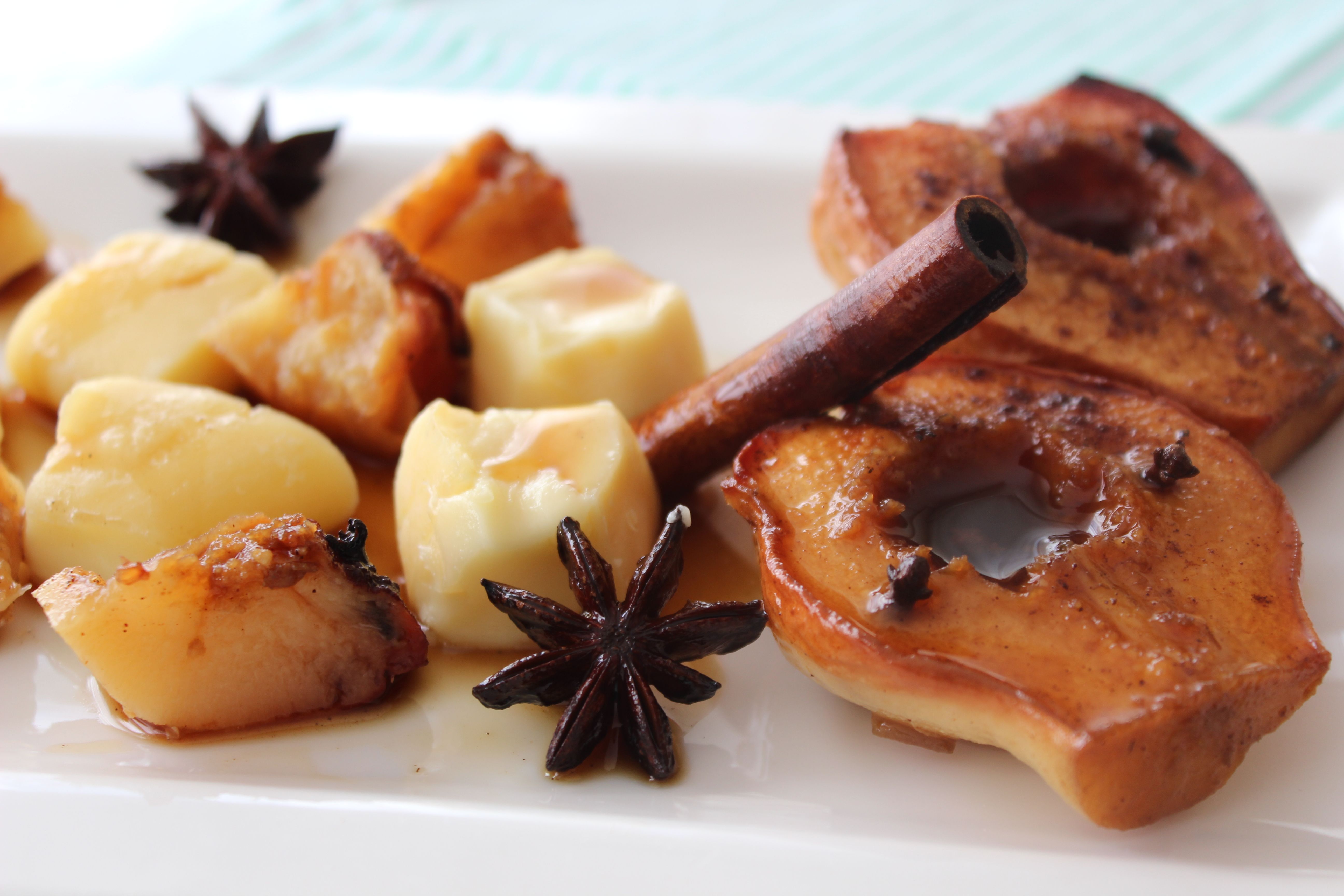 *Solomillo de cerdo al membrillo (mezcla del jugo de cocción del cerdo con mermelada de membrillo reducido).