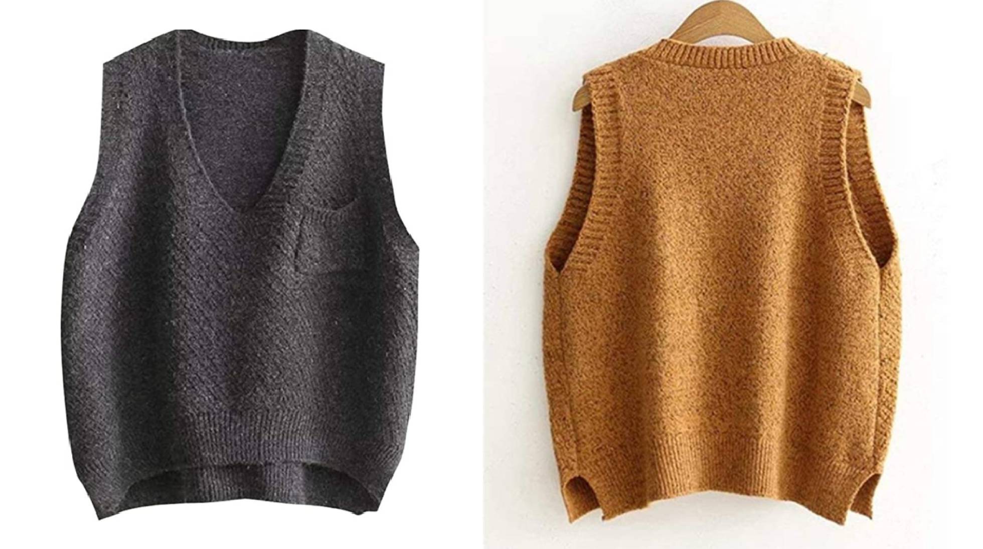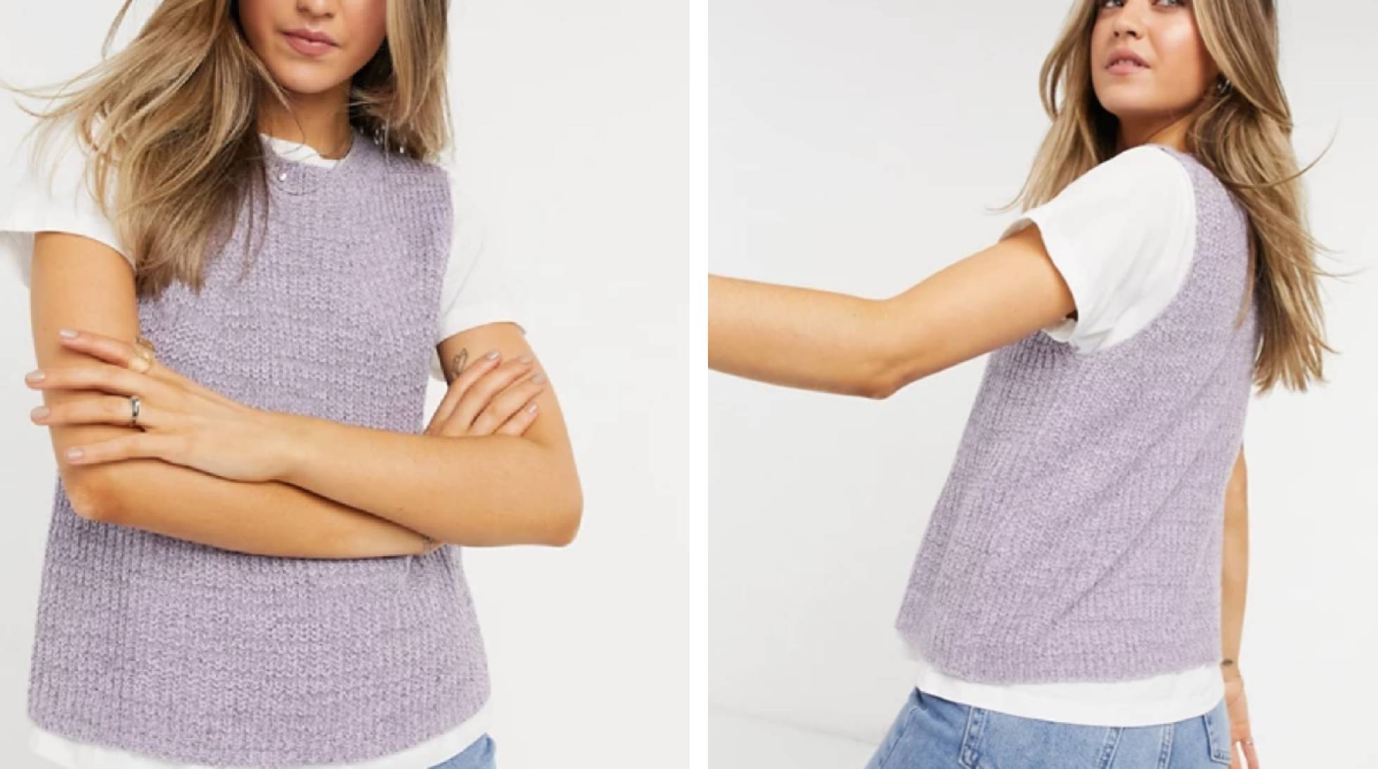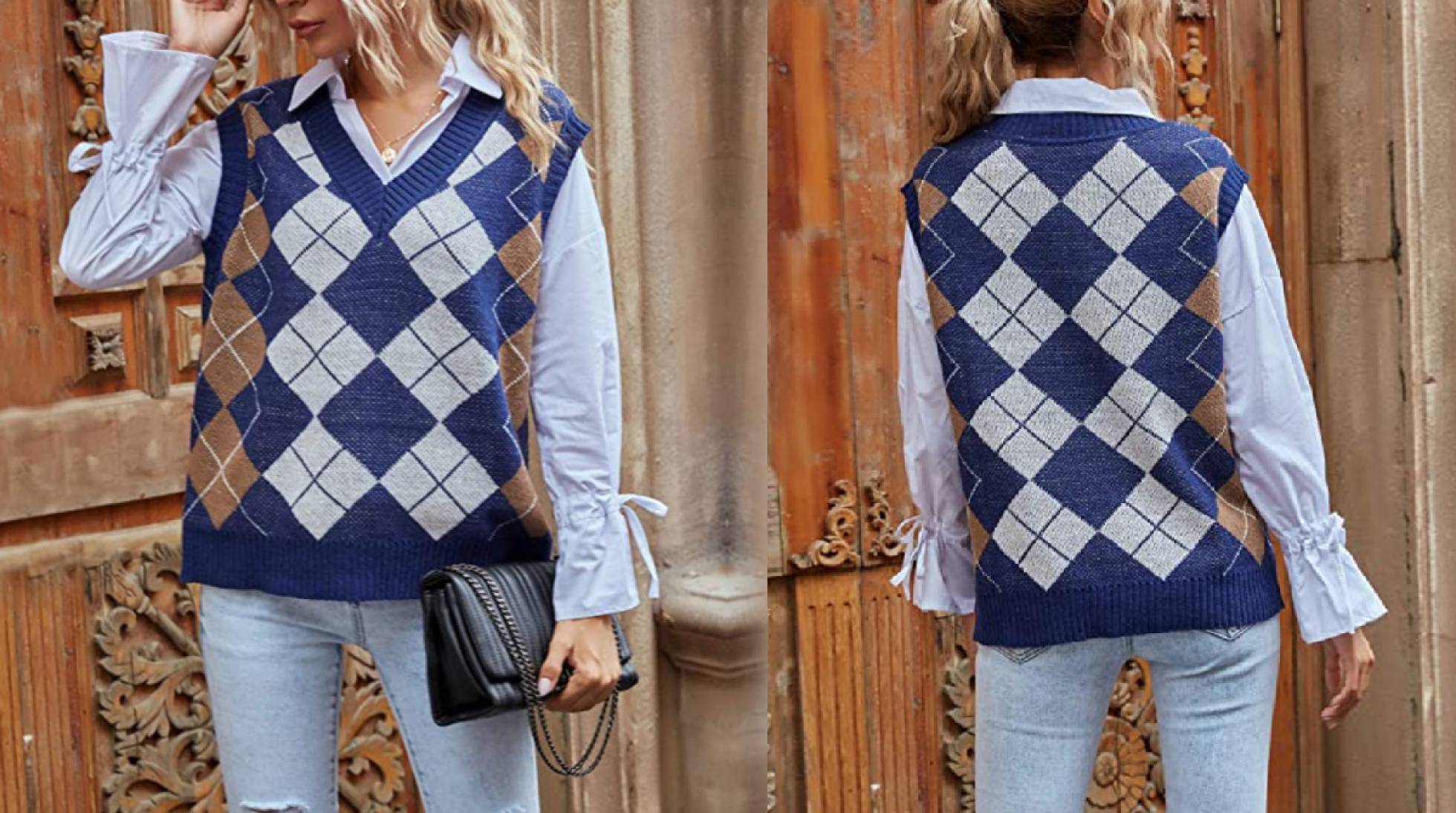 Los rombos se han convertido en protagonistas de jerséis y chalecos esta temporada, así que optar por ellos es una apuesta segura. Este modelo tiene un corte amplio, cuello en forma de V y resulta muy fácil de combinar.