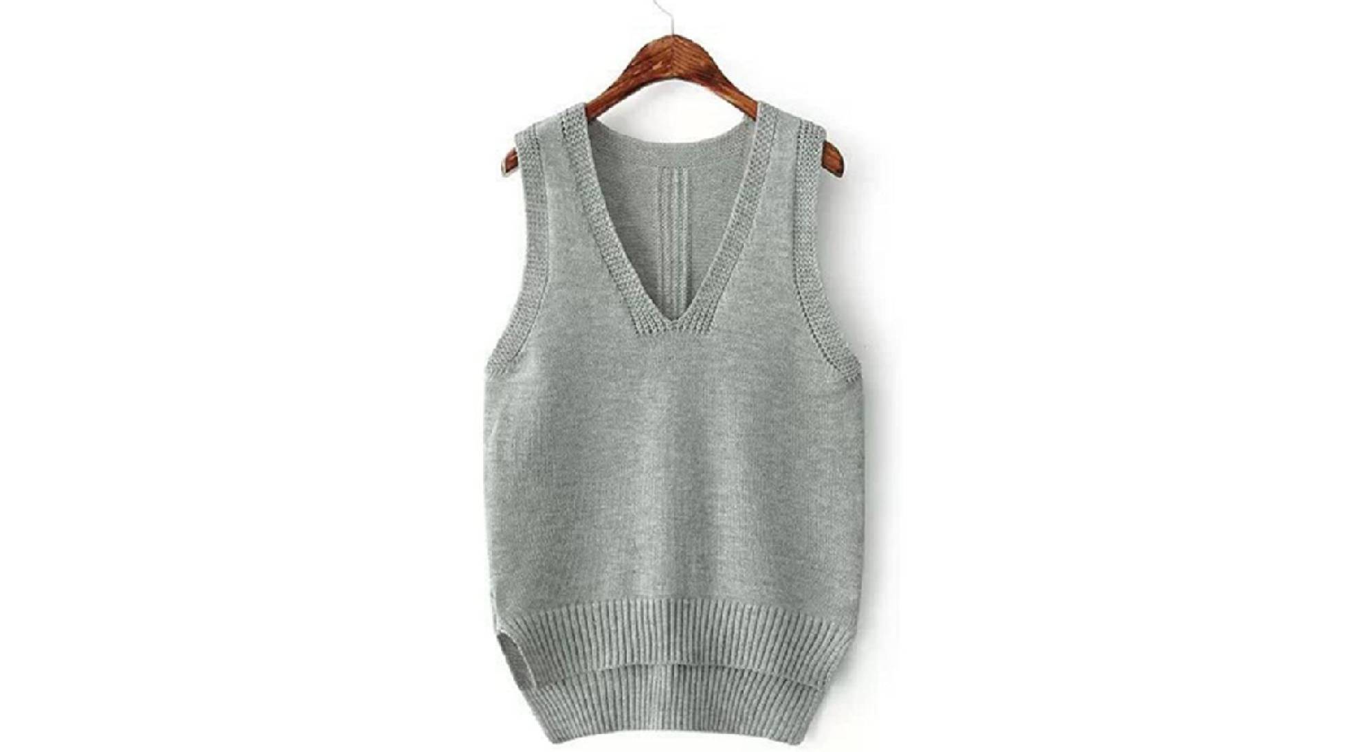 Otra opción adecuada para llevar sobre camisas, jerséis o vestidos es este modelo de corte largo y cuello en forma de V.